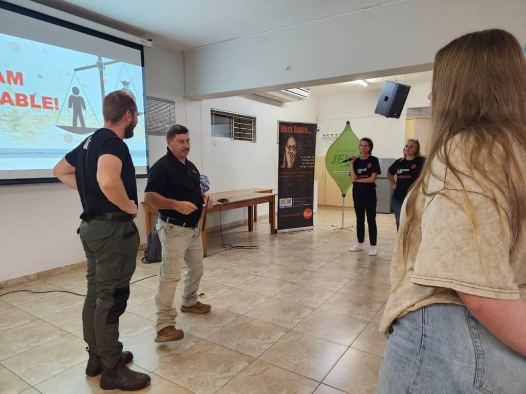 The workshop focused on overall safety, environmental awareness and the reality of human trafficking in South Africa. This was followed by a practical training session where students were taught how to get themselves out of dangerous situations. This included techniques on how to escape a hijacking, as well as how to act in situations where weapons, such as knives, are involved. The focus was on quick thinking, confidence and basic but effective principles regarding self-defense.