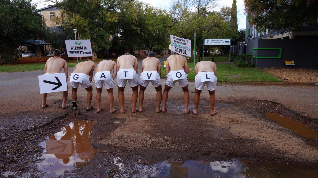 In aanloop tot die amptelike begin van die GATVOL-veldtog het ’n aantal AfriForum Jeug-lede op 16 April byeengekom om hul frustrasie met die swak toestand van paaie op ’n sigbare wyse uit te beeld. Tydens dié byeenkoms het studente – staande in van die grootste slaggate op dié dorp – die woord “GATVOL” strategies uitgespel op hul sitvlak.